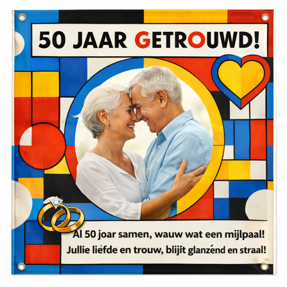 Heb je geen opgemaakt bestand voor het spandoek, dan kunnen wij dat voor je verzorgen aan de hand van jouw input.