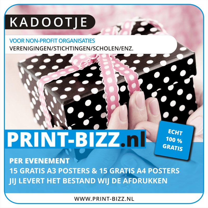 - op de gratis posters plaatsen wij ons logo met de opmerking "drukwerksponsor"